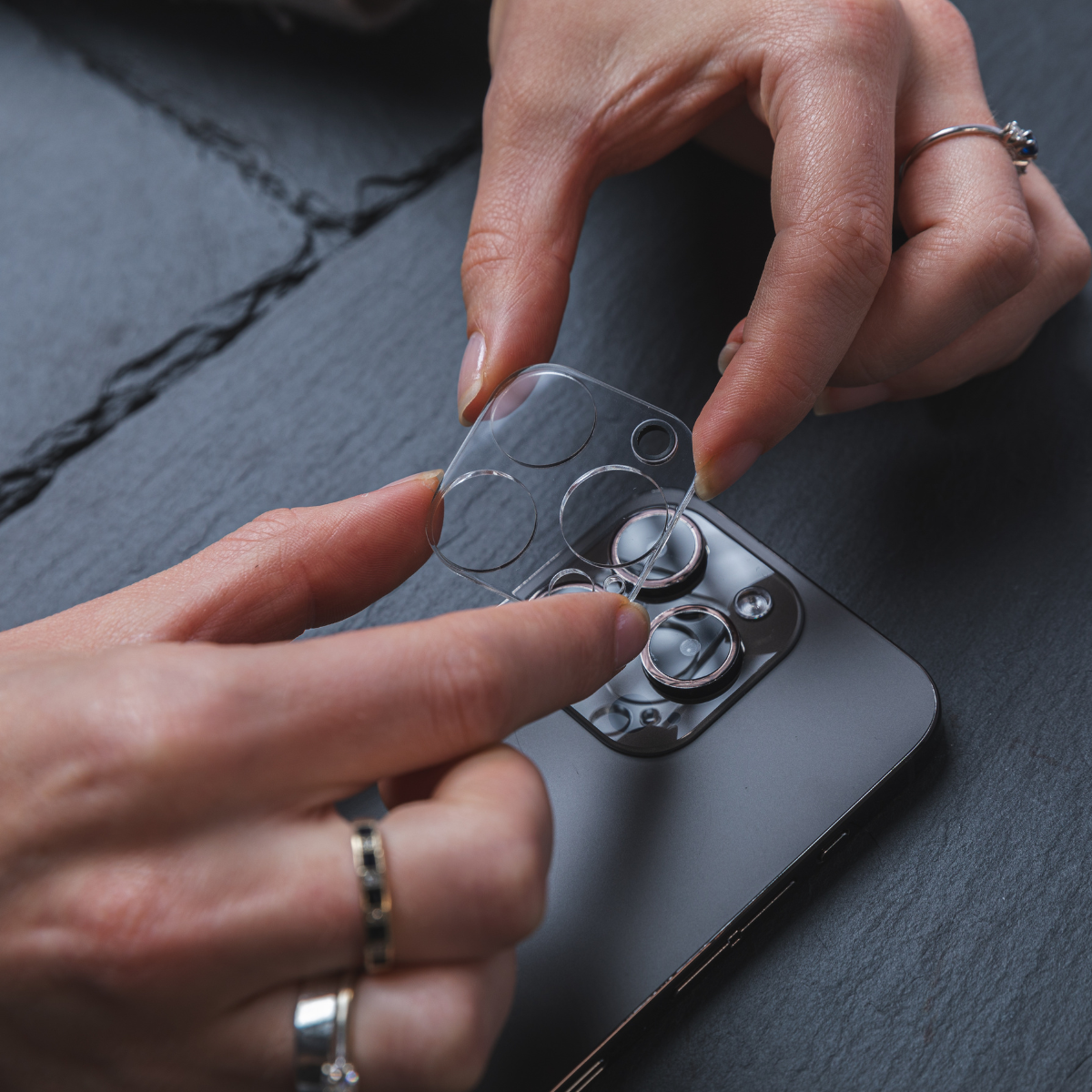 Align the lens protector with the camera on the back of your phone and apply a small amount of pressure on the edges of the lens protector.